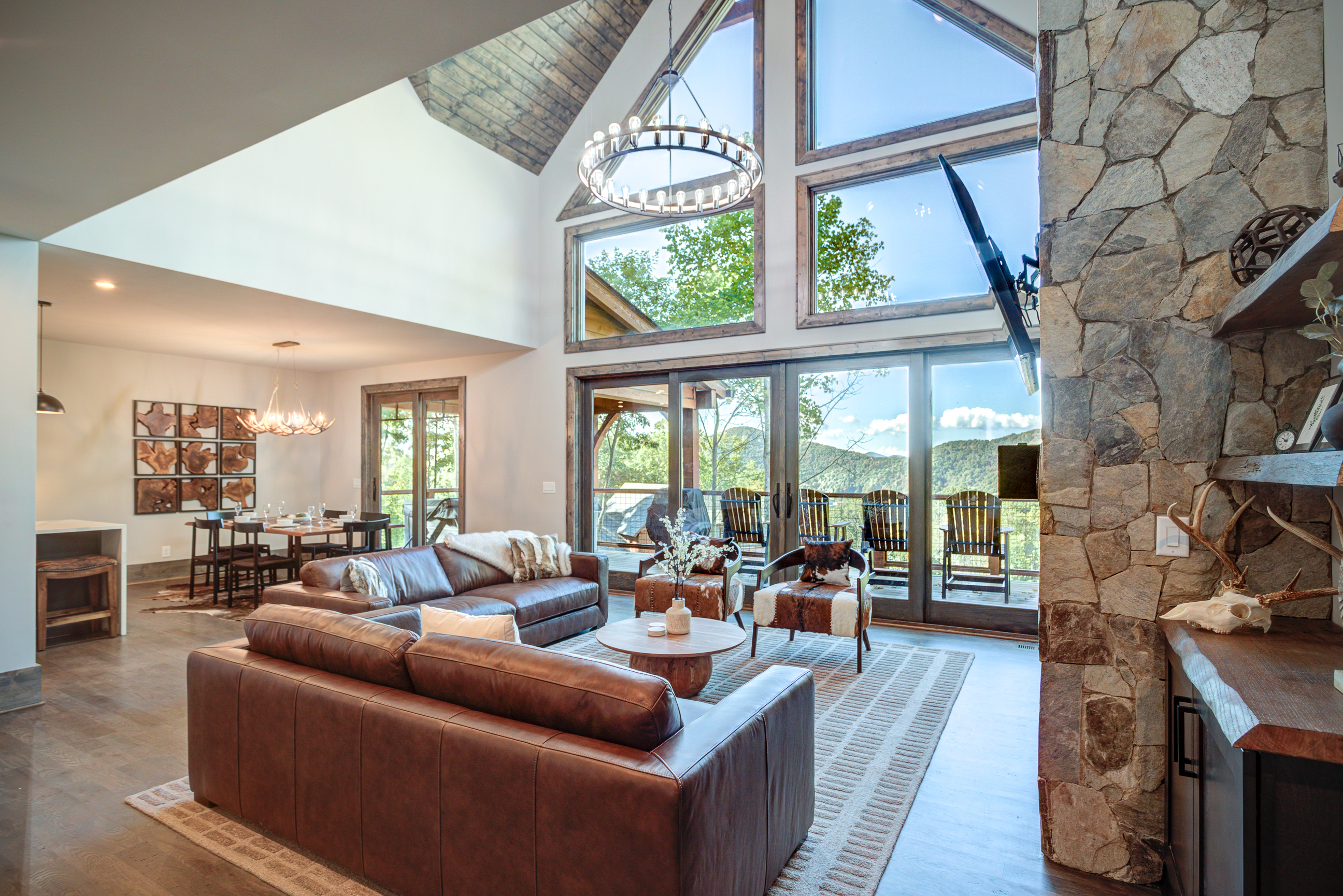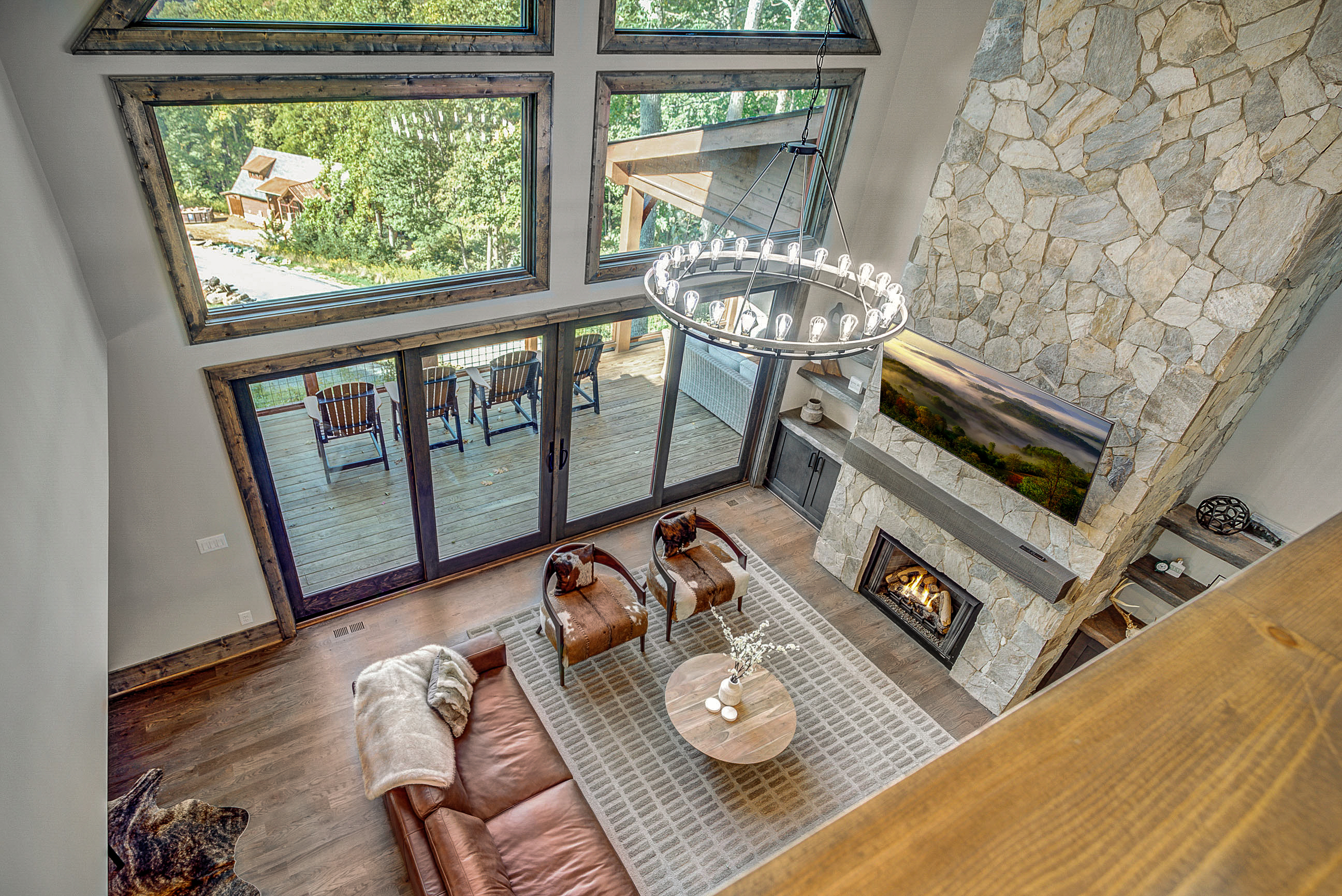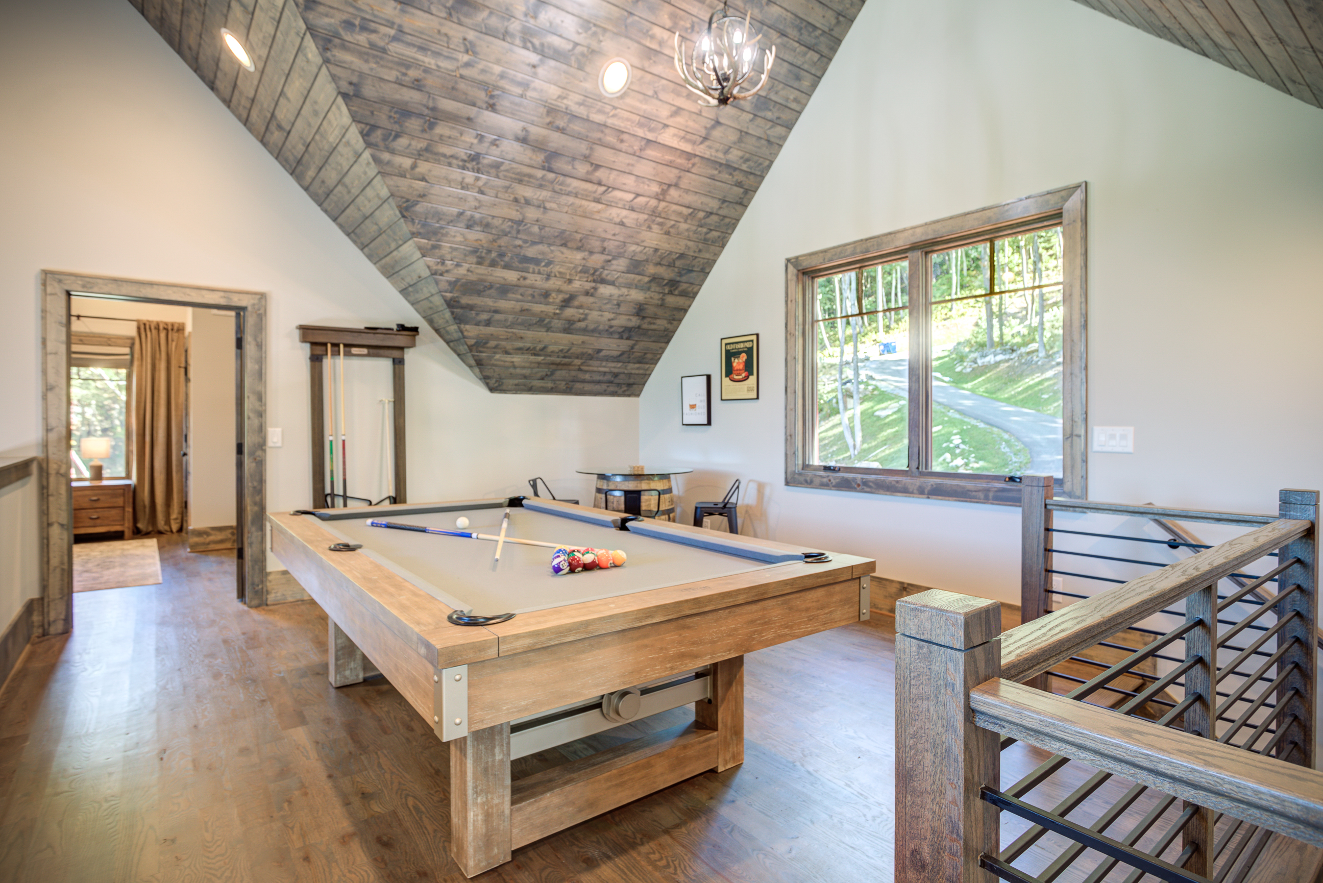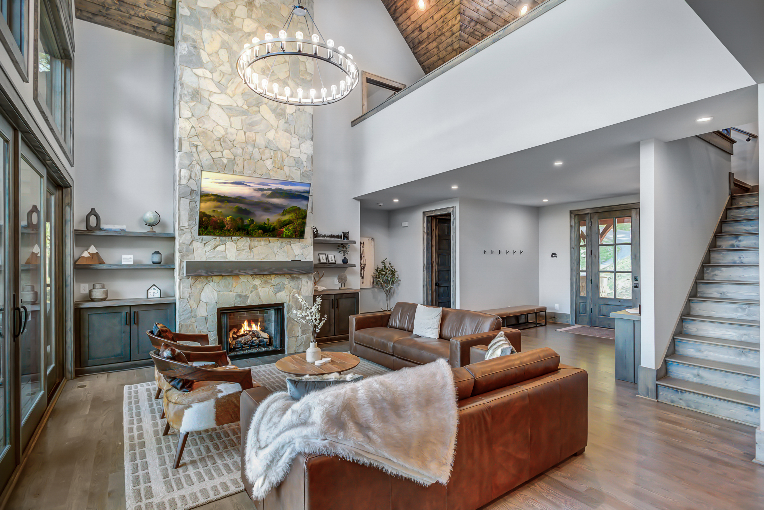 Sitting in the new section of The Villages in Eagles Nest, this location is a hop skip and a jump away from downtown Banner Elk, NC. The home features Aged Barrel stained 3/4" red oak hardwood floors, Aged Barrel trim and tongue and groove ceilings. Open floor plan has a vaulted living room, gas log fireplaces, loft for game room, large deck with hot tub and plenty of storage. Kitchen consists of Kitchenaid appliances, large island and a dining room. Owners suite has a separate outdoor deck entrance with a modern craftsman owners bathroom and a large shower.