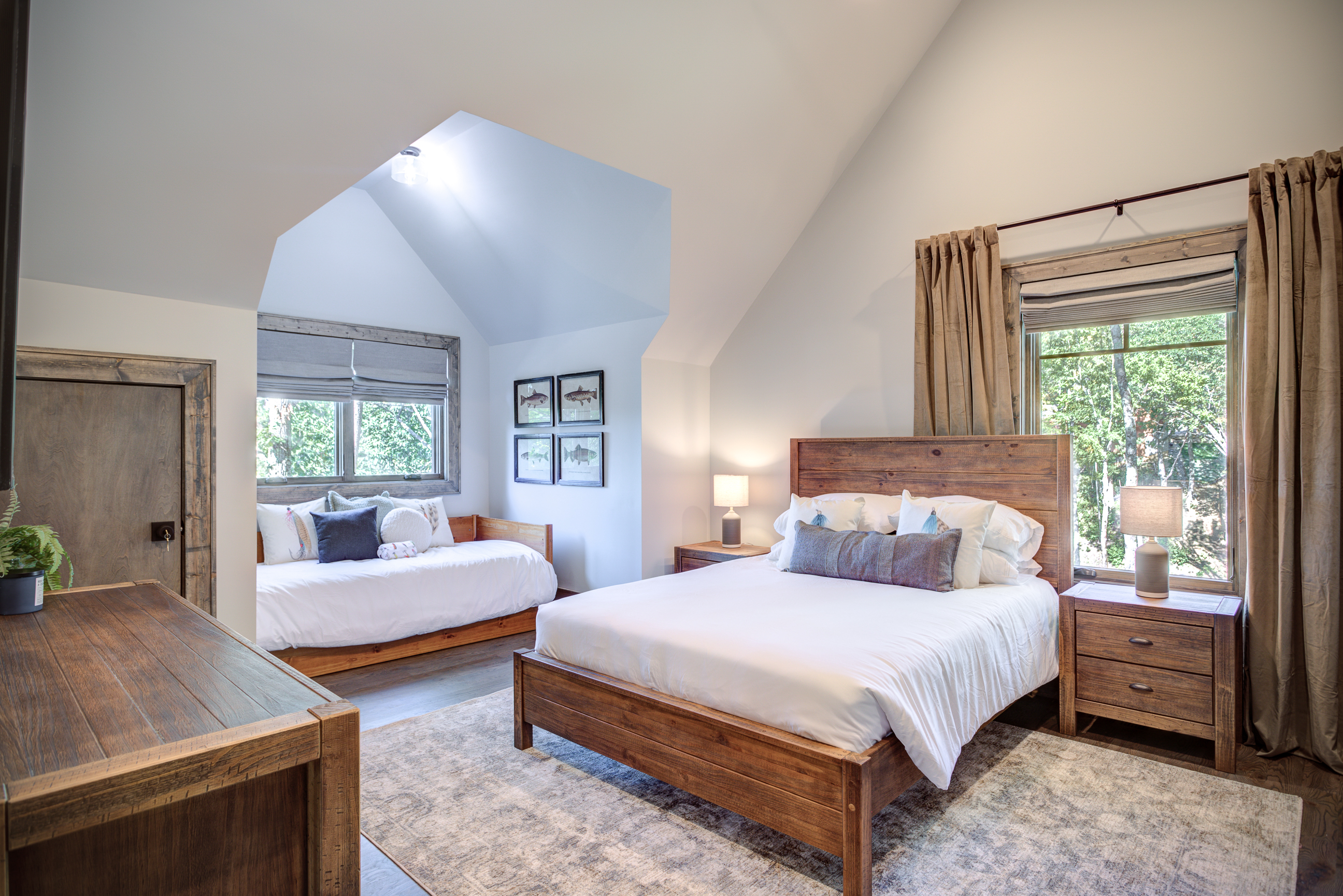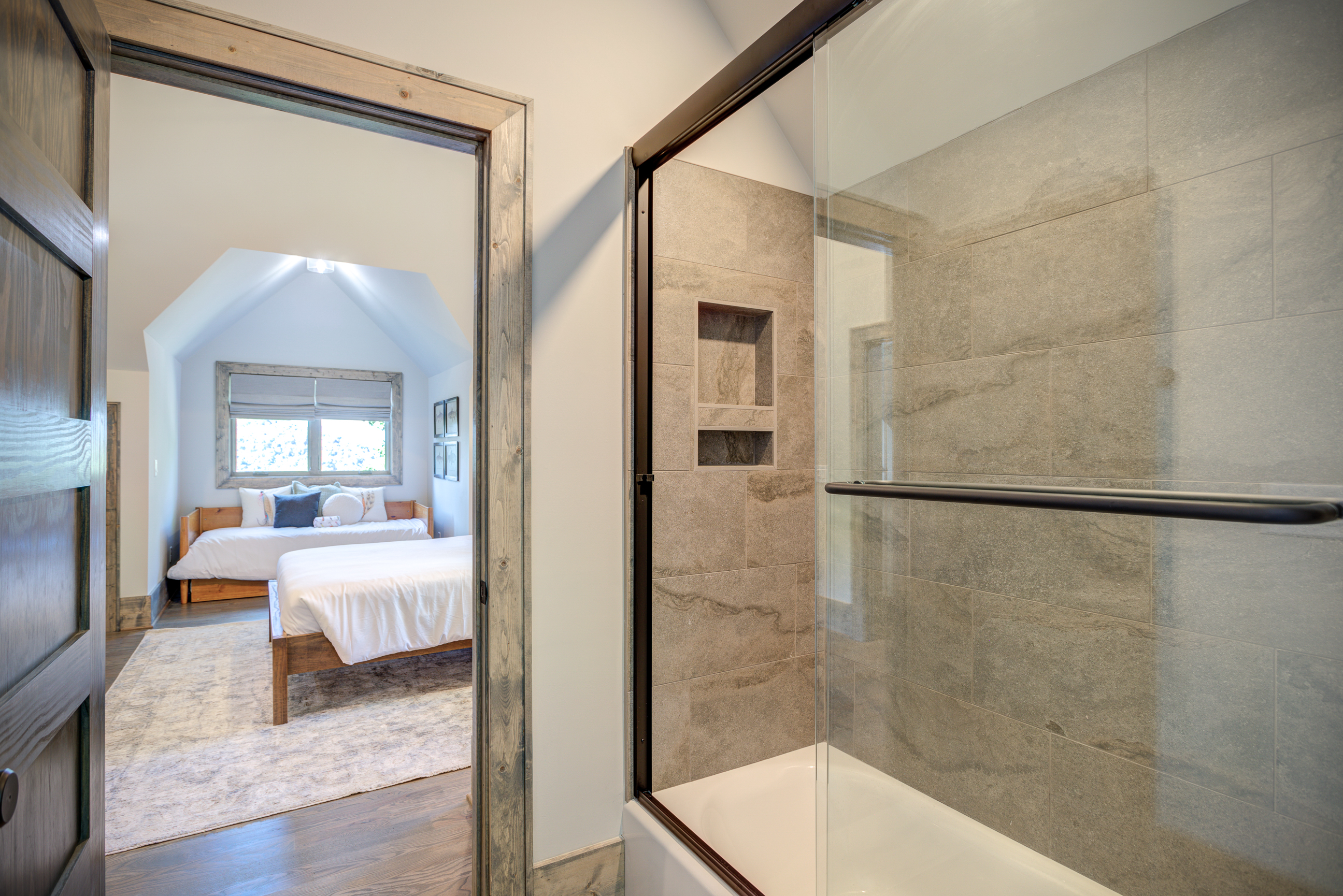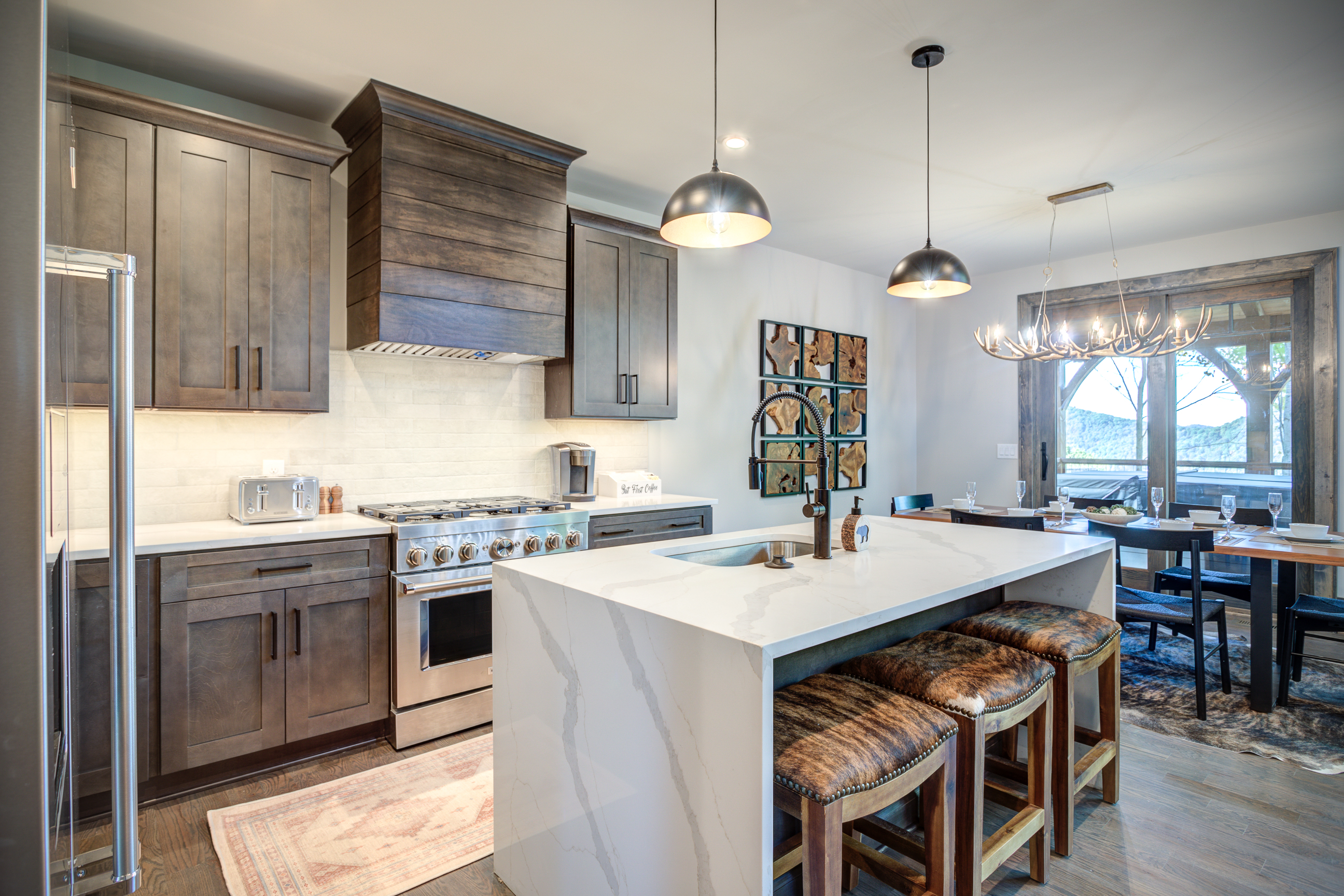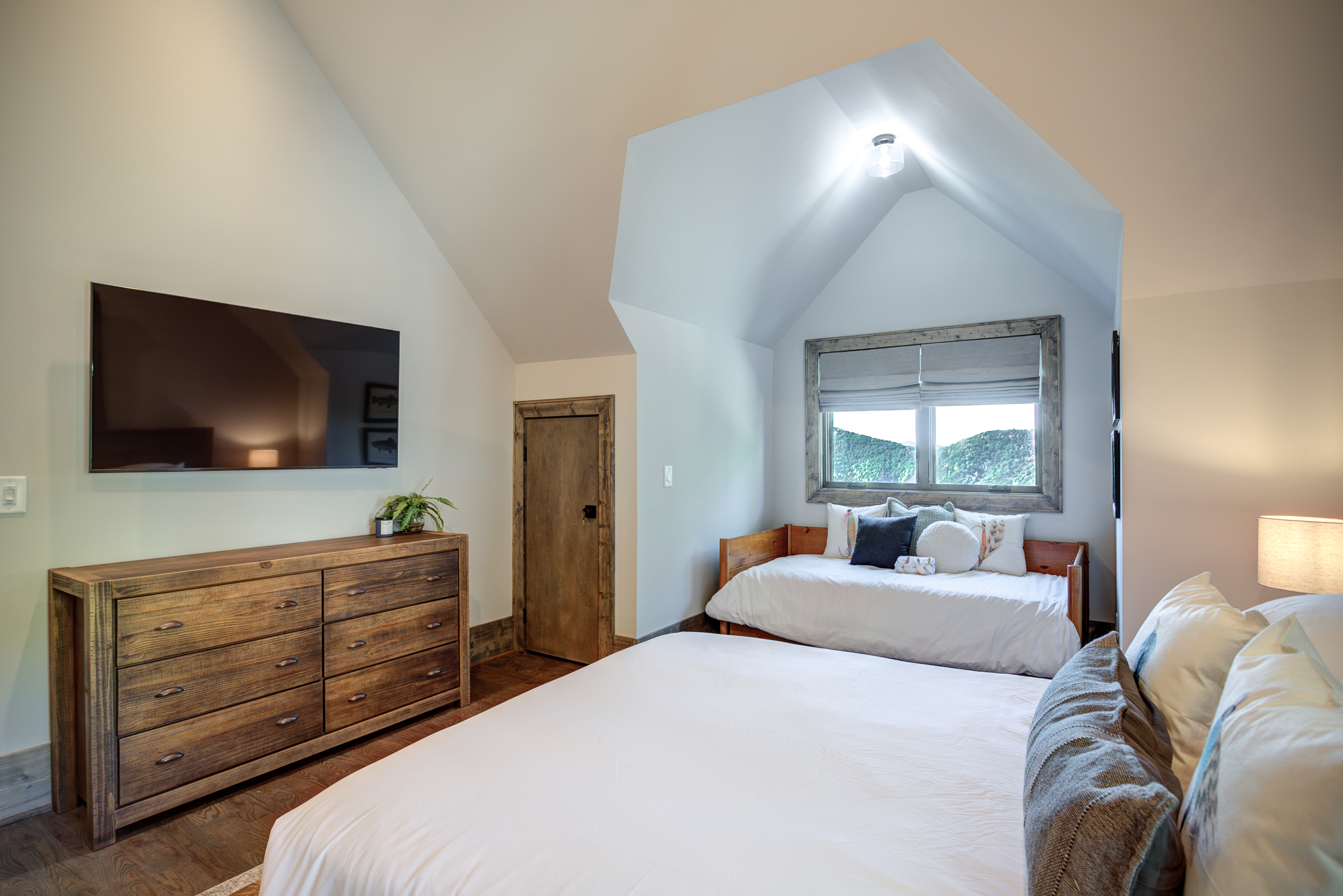 Sitting in the new section of The Villages in Eagles Nest, this location is a hop skip and a jump away from downtown Banner Elk, NC. The home features Aged Barrel stained 3/4" red oak hardwood floors, Aged Barrel trim and tongue and groove ceilings. Open floor plan has a vaulted living room, gas log fireplaces, loft for game room, large deck with hot tub and plenty of storage. Kitchen consists of Kitchenaid appliances, large island and a dining room. Owners suite has a separate outdoor deck entrance with a modern craftsman owners bathroom and a large shower.