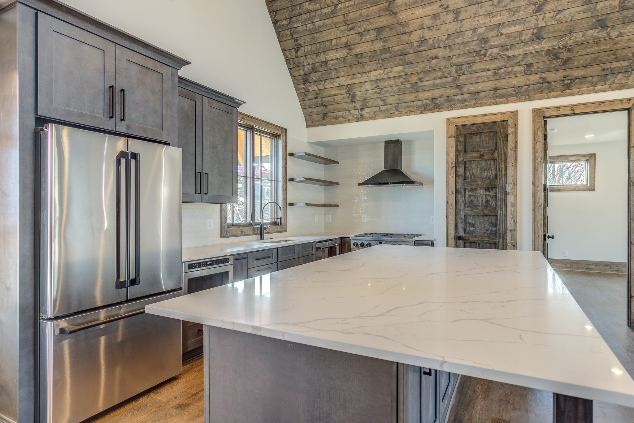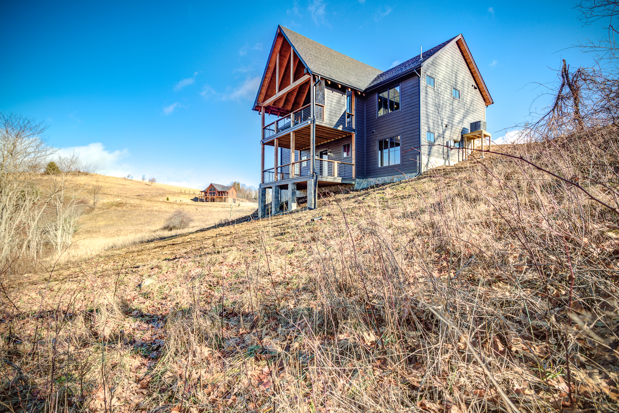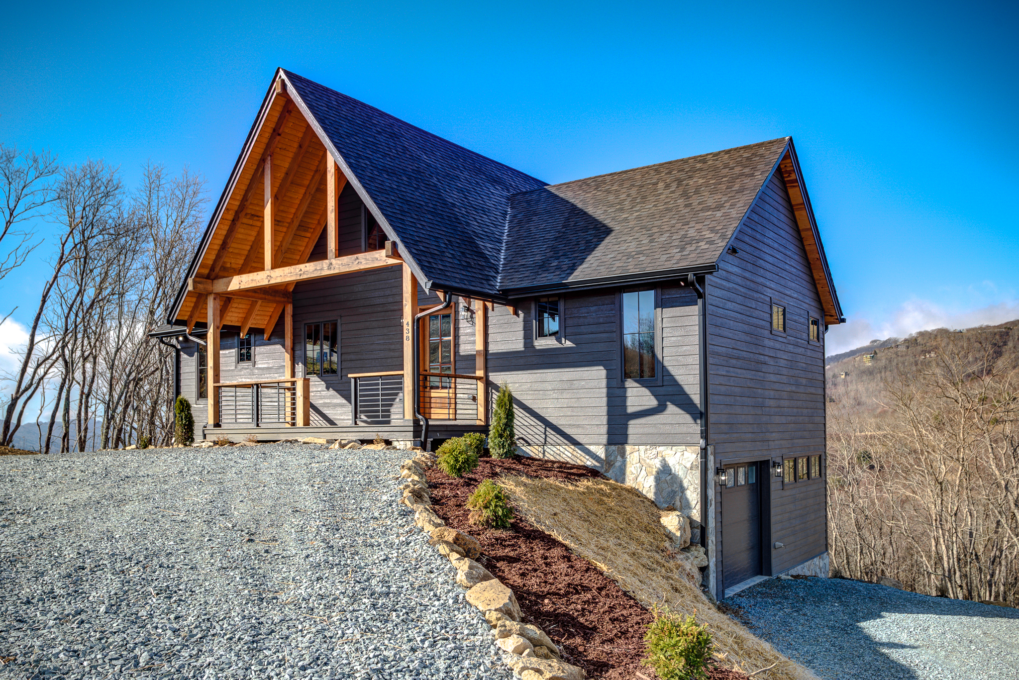 Sleek sophisticated modernesque mountain home in the beautiful subdivision of Monteagle which is located above the Banner Elk Winery in Banner Elk, North Carolina. This 3 bdrm 3.2 bath home has modern touches throughout this craftsman style mountain home. The kitchen consists of Greystone Shaker cabinets with quartz countertops, Cafe appliances, live edge oak shelving and more. Homes includes a den/exercise/game room downstairs, drop zone, a one car garage with large utility room, storage closets throughout, 3 decks overlooking long range mountain views, 2 gas log fireplaces all sitting on a 1.26 rolling acre lot.